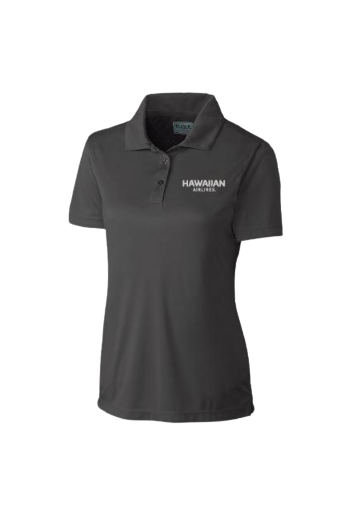 100% polyester interlock, moisture-wicking, Self collar, Three-button placket, Forward shoulder, Open sleeves, Coverstitch detail, Weight 4.4 oz. Machine Wash