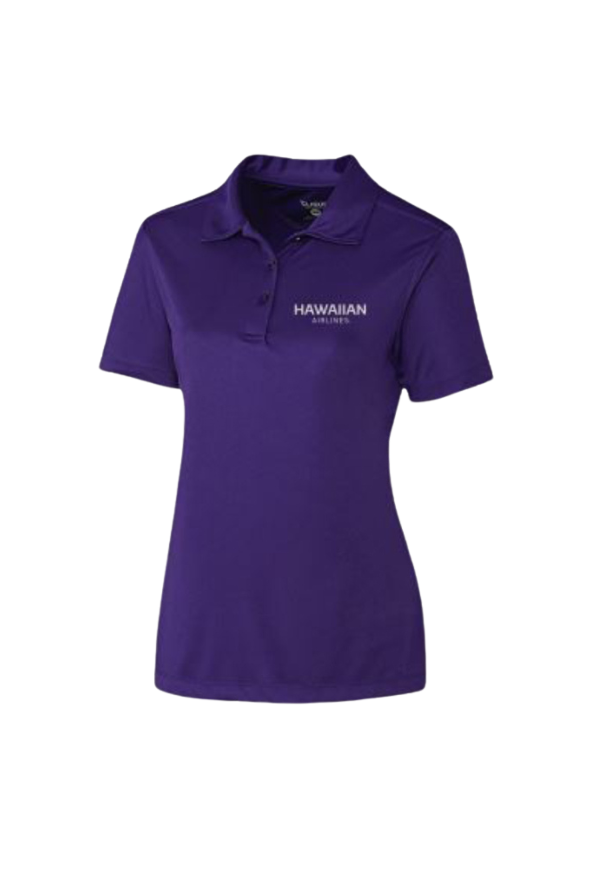 100% polyester interlock, moisture-wicking, Self collar, Three-button placket, Forward shoulder, Open sleeves, Coverstitch detail, Weight 4.4 oz. Machine Wash