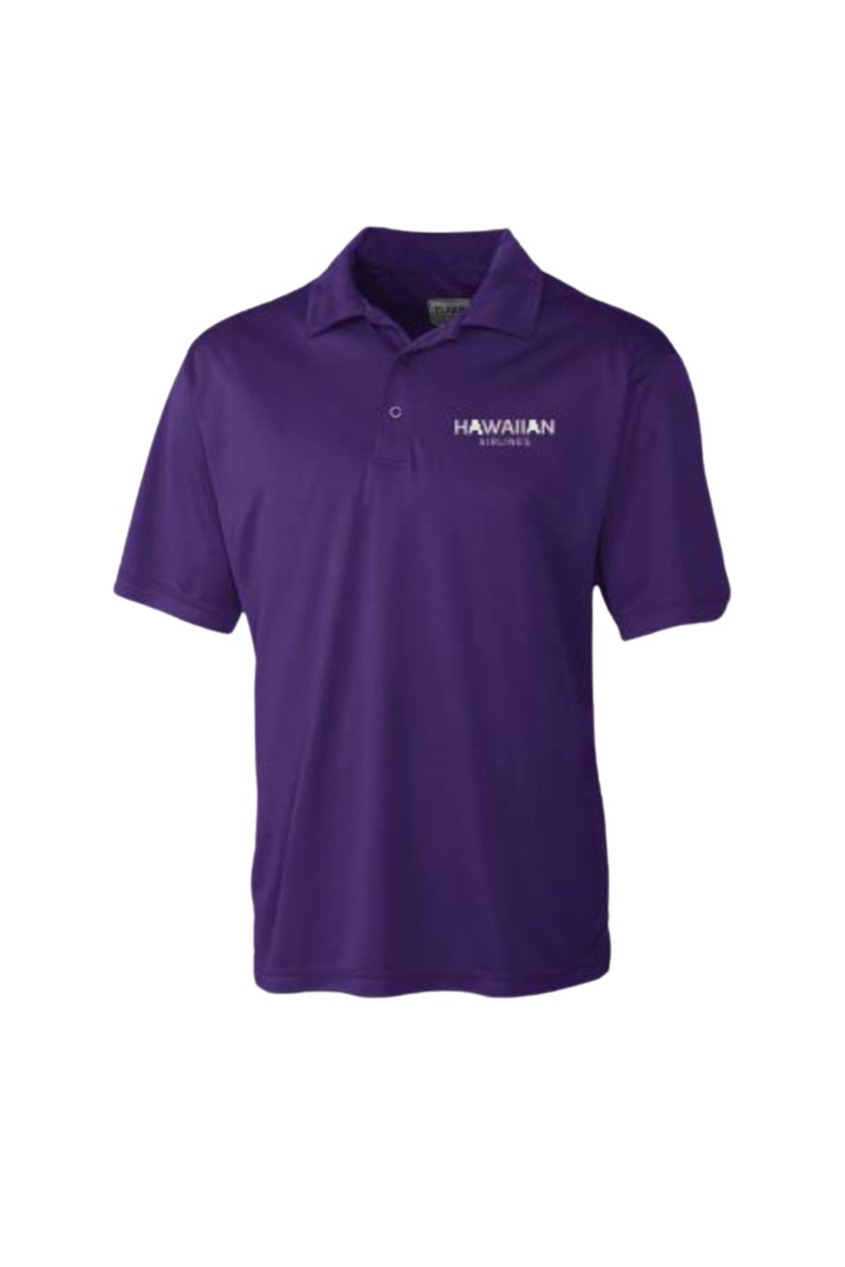 100% polyester interlock, moisture-wicking, Self collar, Three-button placket, Forward shoulder, Open sleeves, Coverstitch detail, Weight 4.4 oz. Machine Wash